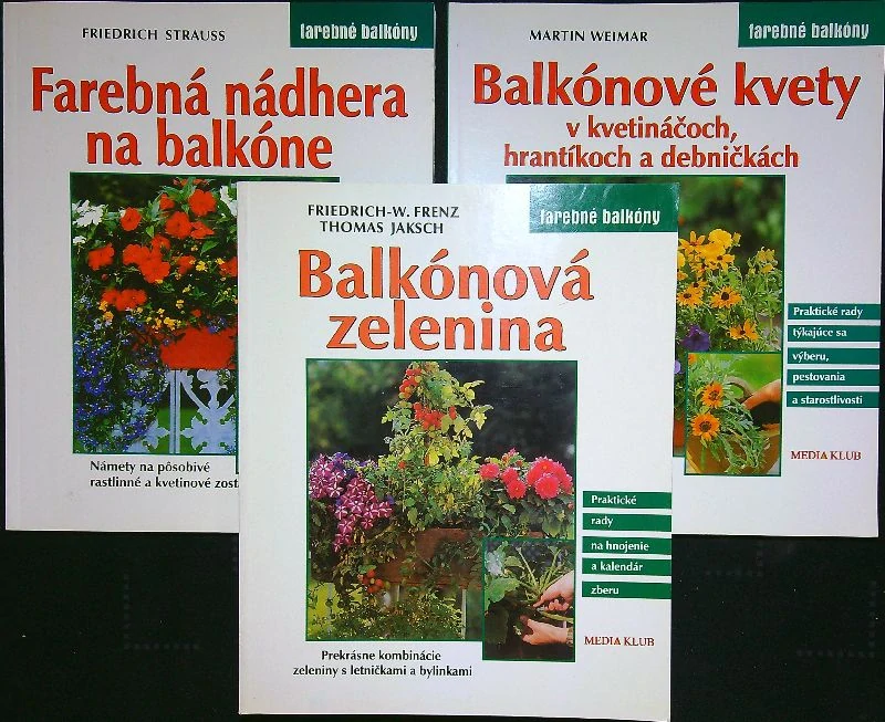 Sprievodca troch publikácií o pestovaní rastlín a zeleniny na balkónoch.
